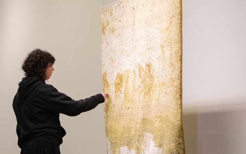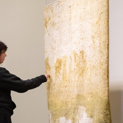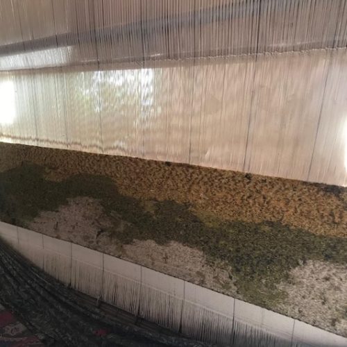 Nach dem Fotografieren war es mir ein grosses Anliegen, diese textil anmutende Oberfläche und dieses fast „Gehen können auf Wasser“ in der künstlerischen Umsetzung hervorzuheben. Aus dieser Idee entstand dieser Teppich, basierend auf dem fotografischen Material. Geknüpft wurde der Teppich aus reiner, natürlich gefärbter Schurwolle.